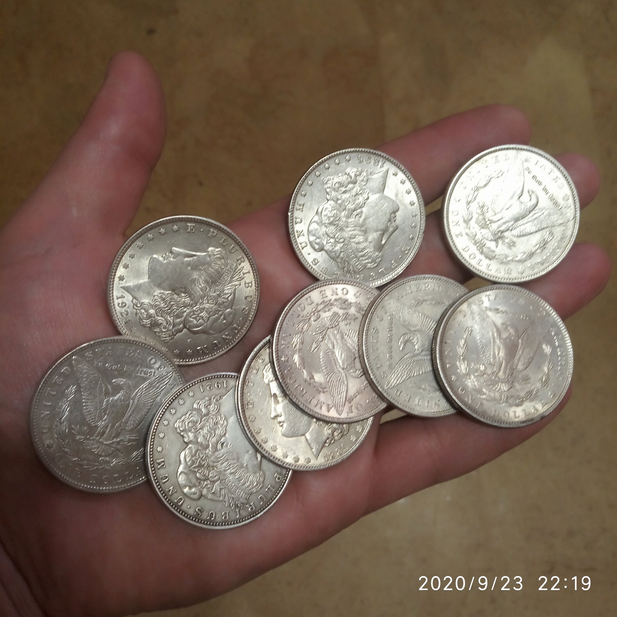 Работа над изготовлением доллара-малыша Моргана идет ударными темпами. Есть успехи, но о них позже, через несколько дней. Скоро он будет готов. Сегодня приобрёл ещё немножко настоящих долларов Моргана различных годов, – рассказал на своей страничке в соцсети «ВКонтакте» Владимир Анискин.