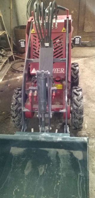 Вот некоторые технические характеристики машины: дорожный просвет – 135 мм, колесная база – 647 мм, высота поднятого ковша – 2228 мм, угол опрокидывания ковша – 48 градусов. Масса погрузчика – 515 кг, номинальная грузоподъемность – 220 кг. Максимальная скорость движения – 6 км/ч, топливный бак – 6,1 л, объем двигателя – 389 куб. см. Работает на 95-м бензине.