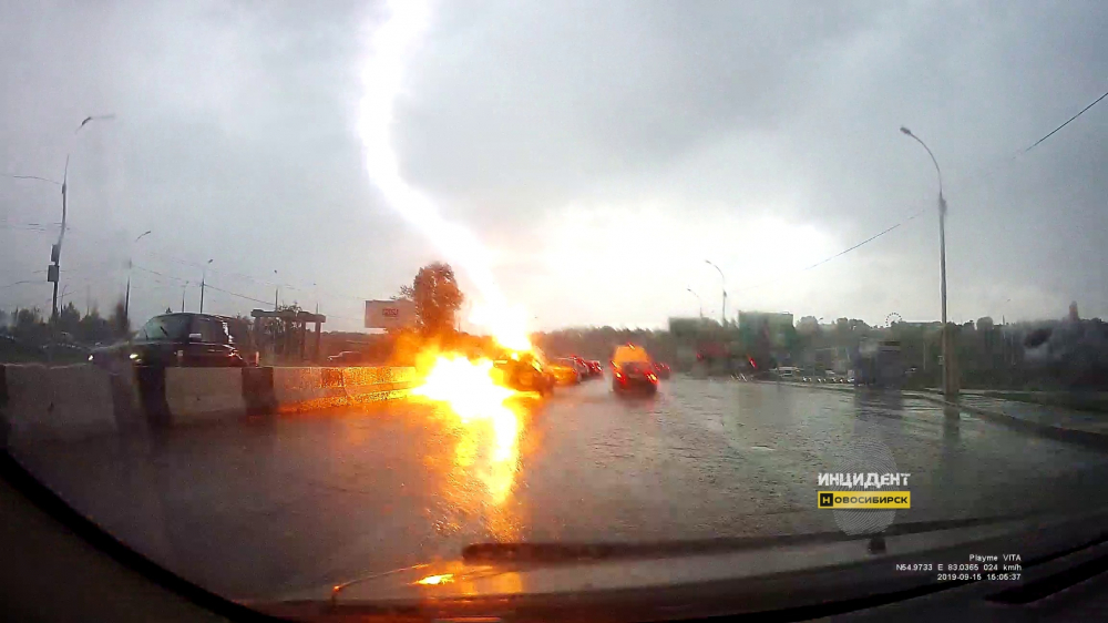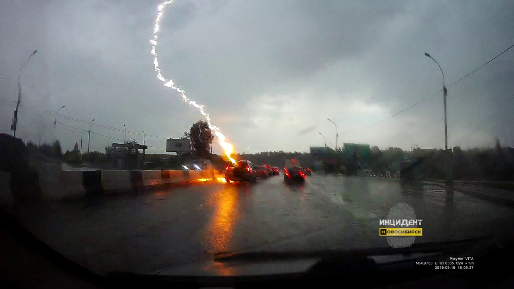 В воскресенье в Новосибирске прошел сильный ливень с громом и молниями. Одна из них на Бердском шоссе ударила в автомобиль. Люди, находившиеся в автомобиле, не пострадали. Само транспортное средство не получило серьезных повреждений. То, что обошлось без последствий, можно назвать счастливой случайностью.