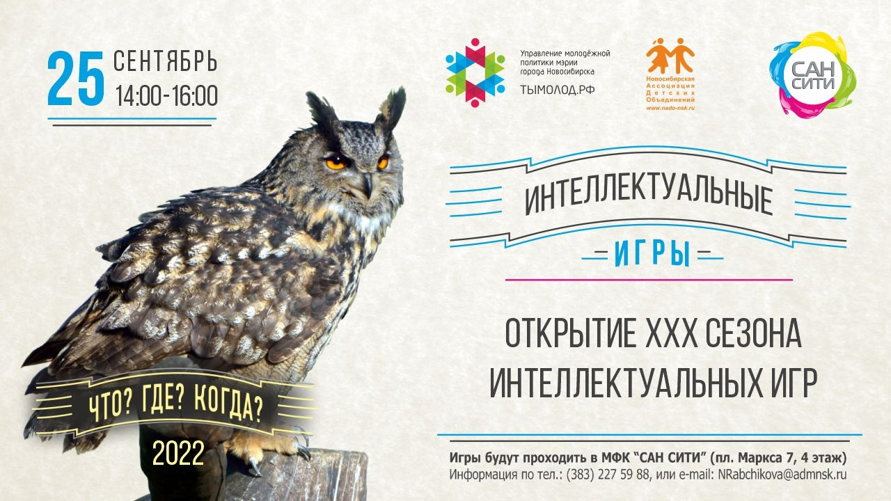 Командам, желающим принять участие в открытии XXX сезона интеллектуальных игр, нужно подать заявку до 21 сентября включительно на e-mail: NRabchikova@admnsk.ru.
