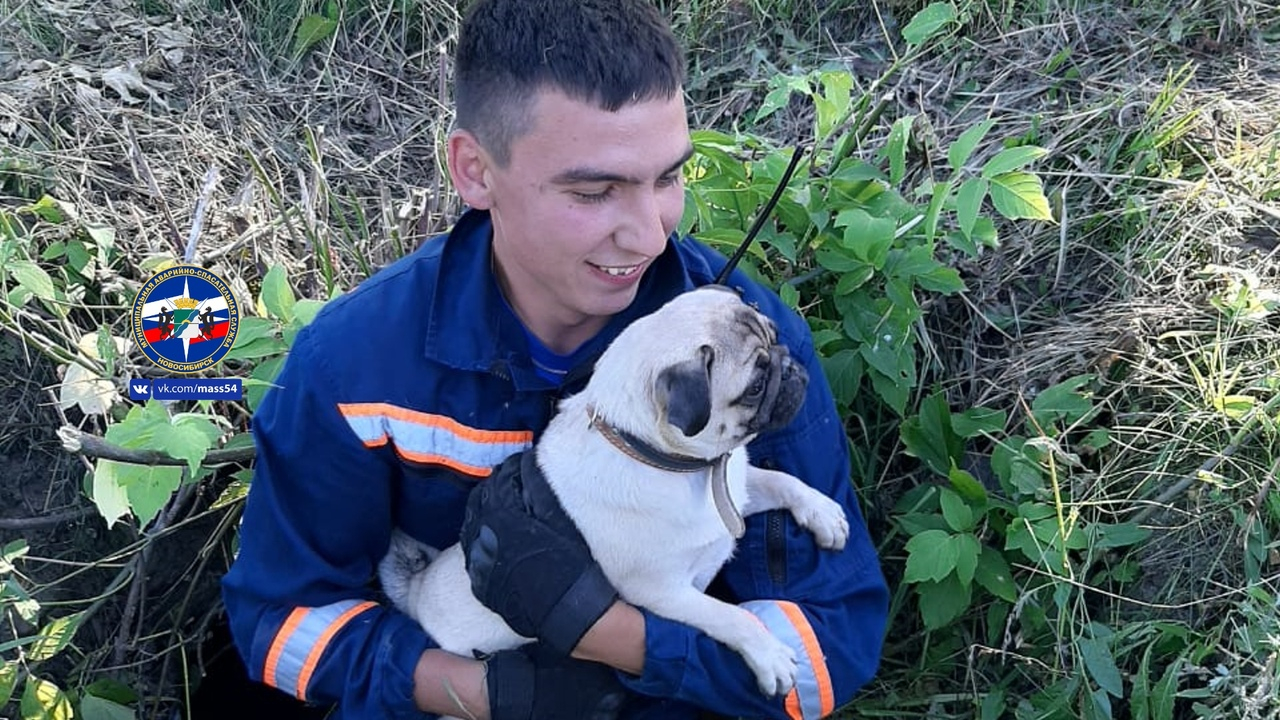 Спасатели встретились с хозяйкой животного, и она указала им на малозаметную неглубокую яму в траве, из которой доносился лай. Мопса достали на поверхность и передали женщине, – рассказывают в службе спасения.
