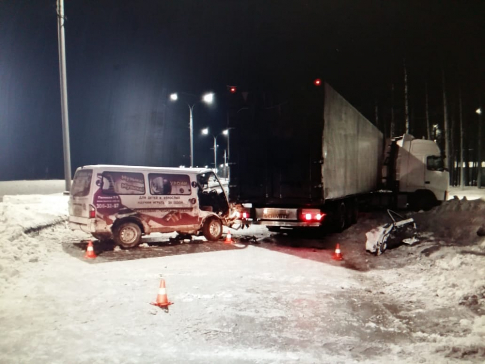 На Бердском шоссе женщина на микроавтобусе влетела под фуру