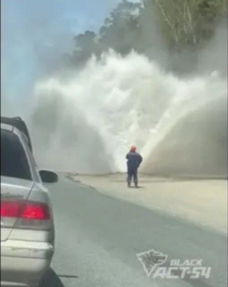 Прорыв трубы с эффектным выбросом воды в небо произошёл на Бердском шоссе перед перекрёстком с улицей Русской, — сообщили очевидцы.