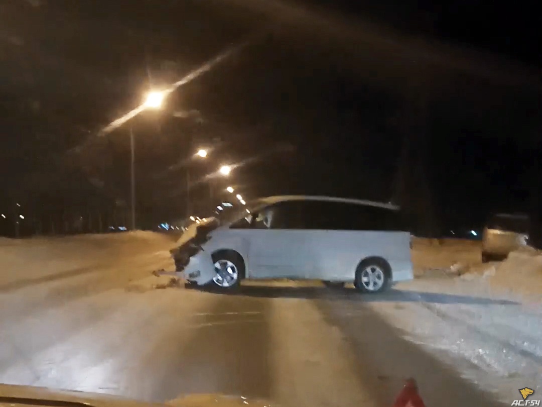 – В результате утренней аварии у минивэна уничтожена передняя часть, автомобиль развернуло поперёк дороги. Внедорожник оказался в сугробе на обочине с повреждениями передней части и левой стороны. Об обстоятельствах аварии подписчик не рассказал, – сообщили в паблике АСТ-54.