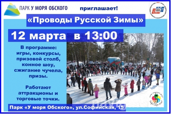 В парке, как рассказал директор ПКиО Андрей Шемельков, праздник «Проводы русской зимы» состоится в будущее воскресенье – 12 марта. Традиционно площадкой его проведения станет главная сцена. В программе: концертные номера, театрализованное представление, игры, конкурсы, хороводы, конное шоу, призовой столб, угощение блинами, сжигание чучела. Будут работать аттракционы и торговые точки.