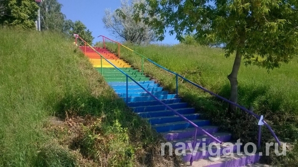 Жители микрорайона ОбьГЭС сделали себе подарок ко Дню города, отремонтировав и раскрасив в цвета радуги бетонную лестницу, ведущую к пляжу.