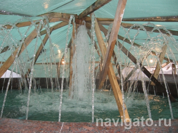 Как рассказал директор по строительству ООО «ТД Сервисгрупп» Владимир Славгородский, работы начались 17 сентября. Велись они в непростых погодных условиях – котлован периодически заливали дожди. Но, организовав три смены, генеральный подрядчик, а также компании «Базальт» и «Городские фонтаны» смогли за месяц справиться с задачей. Сейчас осталось установить освещение, устранить недоделки. Заморозки, которые обещают сибирякам синоптики, тут не помеха: над фонтаном натянули шатер из полиэтиленовой пленки, который нагревают тепловыми пушками. Главное сейчас – благоустройство: «Горзеленхоз» должен уложить более 700 квадратных метров тротуарной плитки.