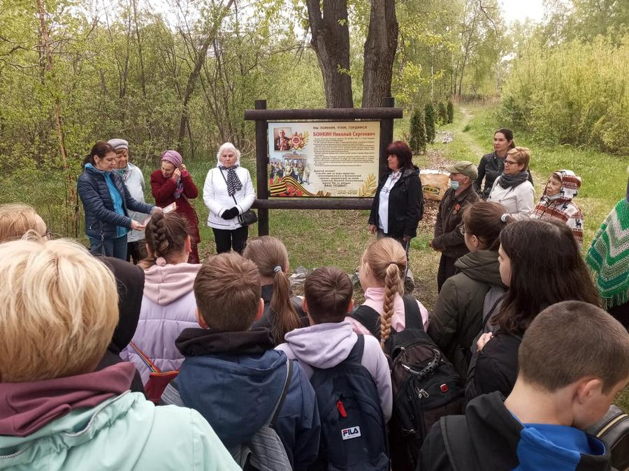 Среди собравшихся были ветераны, ученики школы №119 и серебряные волонтеры. Татьяна Николаевна, дочь участника Великой Отечественной войны Николая Сергеевича Бонкина, рассказала о его фронтовом пути и подвиге. Проходило всё возле информационного стенда, посвящённого Николаю Сергеевичу. В этом году ему исполнится сто лет.