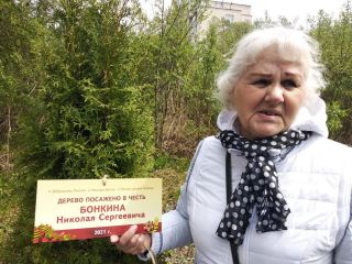 Ирина Чуева отметила, что по проекту предполагалось посадить туи, и теперь посаженные деревья обретут именные таблички в честь уважаемых в микрорайоне фронтовика Николая Сергеевича Бонкина, ветеранов Александра Трофимовича Сергеева, Нины Васильевны Костючкиной, Николая Леонидовича Палигина. Вывесить таблички и полить деревья доверили школьникам, которые это сделали с удовольствием.