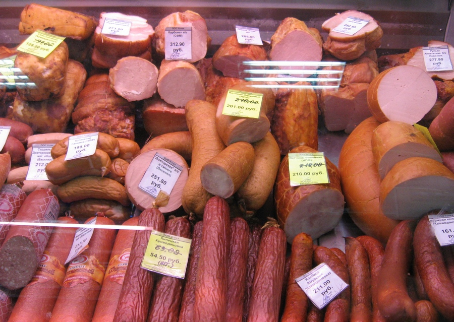 – шпикачки, колбасу «Российскую» и «Деревенскую», окорок «Мичуринский», сервелат «Фирменный»;