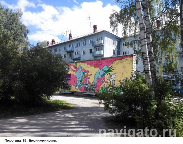 В данный момент расписывается стена у входа в общежитие НГУ на Пирогова, 8. Над граффити о доместикации лисиц работает стрит-арт художник Наталья Пастухова из Екатеринбурга. Всего в студгородке НГУ появится три настенных росписи, кроме одомашнивания лисиц, будут затронуты темы «Биоинжениринг» и «Денисовский человек».