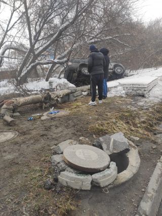 ЧП произошло 5 января ранним утром около 6 часов в микрорайоне ОбьГЭС. Водитель на Range Rover двигался со стороны Советского шоссе, не справился с управлением, врезался в колодец теплосети и перелетел через трубопровод.