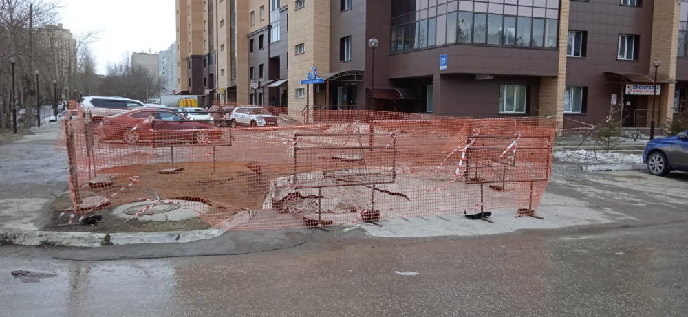 Безрадостную картину с провалившимся асфальтом наблюдают жильцы дома № 21 и идущие мимо пешеходы уже не первый день. В пятницу, 1 апреля, яму рядом с перекрёстком улиц Рубиновая и Российская огородили.
