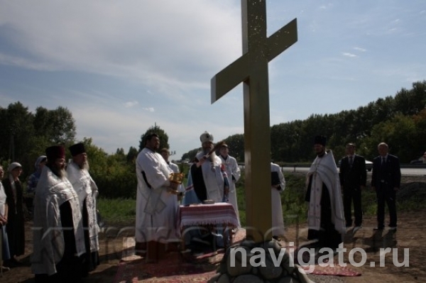 Владыка Тихон, глава Новосибирской и Бердской епархии, совершил молебен у символа православия и окропил его святой водой. Он пояснил: крест будет освящать трассу, где аварии довольно часто происходят. Так же он отметил, что в тех местах, где епархия устанавливает кресты, аварии хоть и бывают, но уже без человеческих жертв.