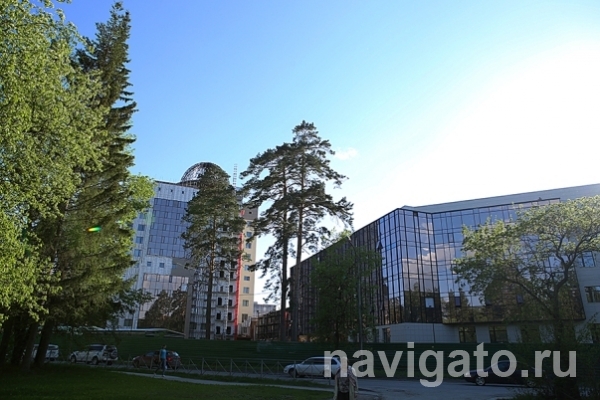 Здание корпуса будет венчать купол. «Каркас купола установлен, скоро его застеклят. В дальнейшем купол будет использоваться как смотровая площадка, это летнее помещение, отапливаться оно не будет», — пояснили в пресс-службе университета.