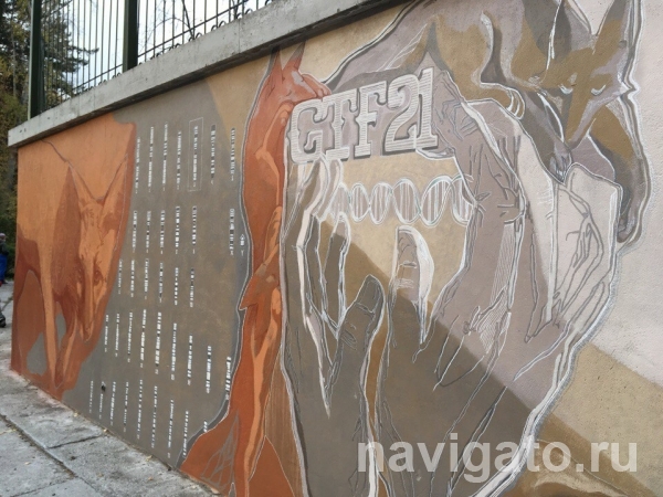 Наталья Пинус, один из организаторов фестиваля научного стрит-арта «Графит науки», говорит, что это панно «одно их самых изысканных и нежных».