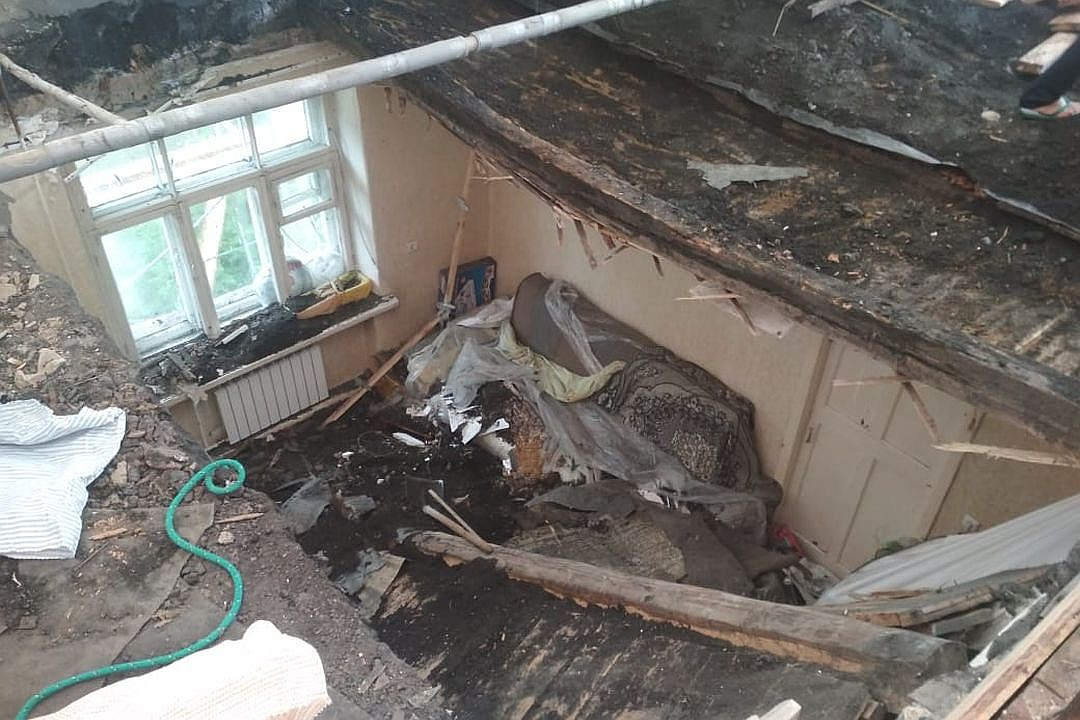 Около трёх часов ночи в доме № 20 по 2-й улице Шевцовой в Калининском районе рухнула крыша. Женщина и ребенок в течение нескольких часов были заперты в одной из комнат и ждали помощи спасателей.