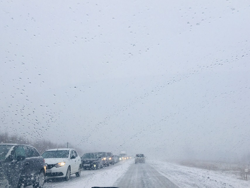 18 апреля по праву можно назвать Днем жестянщика. Почти всю ночь в городе шел дождь, затем столбик термометра опустился до минусовых температур и выпал снег. И вот результат: утром город встал в пробках.