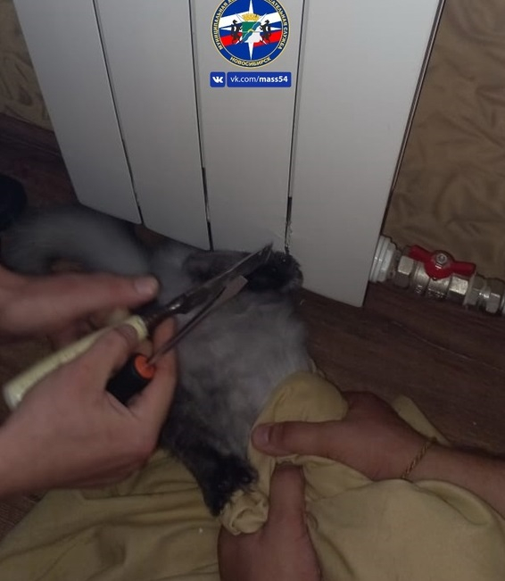 Так произошло и на этот раз. В службу спасения МАСС поступил звонок от жителя одной из многоэтажек в Центральном районе Новосибирска. Любимец семьи просунул лапу между секциями батареи и застрял. Экипаж муниципальной аварийно-спасательной службы выехал по указанному адресу и помог освободить лапу животного.