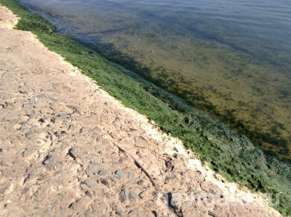 В середине сентября вновь зацвело водохранилище. На протяжении всей набережной водохранилища в микрорайоне ОбьГЭС у кромки воды можно наблюдать зеленые водоросли, часть из них волной выбросило на плиты. Полоса засохших водорослей в ширину достигает около 40 см.