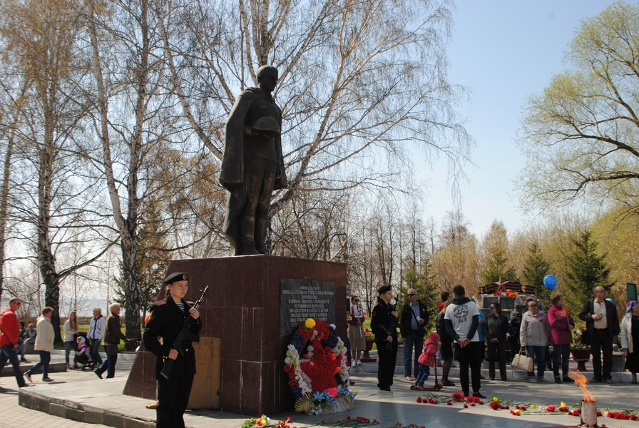 Памятник открыли к 55-летию Победы. Большой вклад в его создание внесли ветераны во главе с Клавдией Васильевной Таборовой. Строительство постамента вели хозспособом. Со временем основание стало разрушаться.