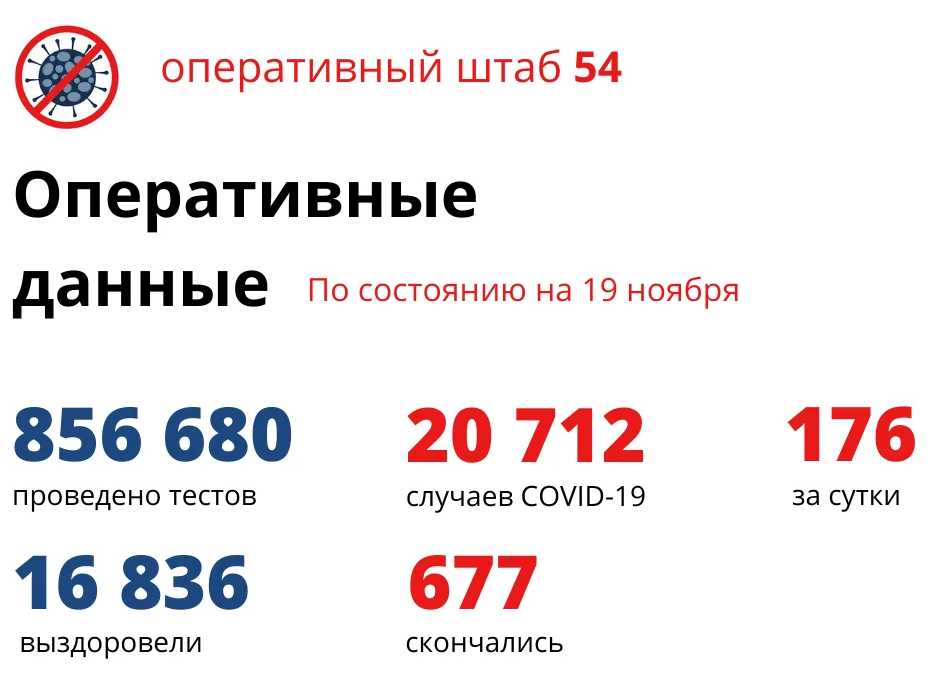 Всего с начала пандемии, по данным оперштаба, в Новосибирской области зарегистрировано 20712 человек, заразившихся COVID-19, выписаны 16836 выздоровевших.