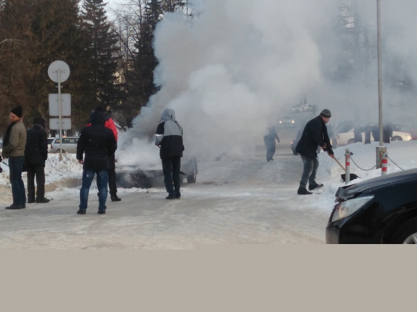 В этот день в администрации Советского района проводились публичные слушания, посвященные микрорайону Шлюз. Желающих обсудить перспективы развития было много, как и машин на парковке рядом с администрацией. В разгар мероприятия собравшимся сообщили - одна из машин горит.