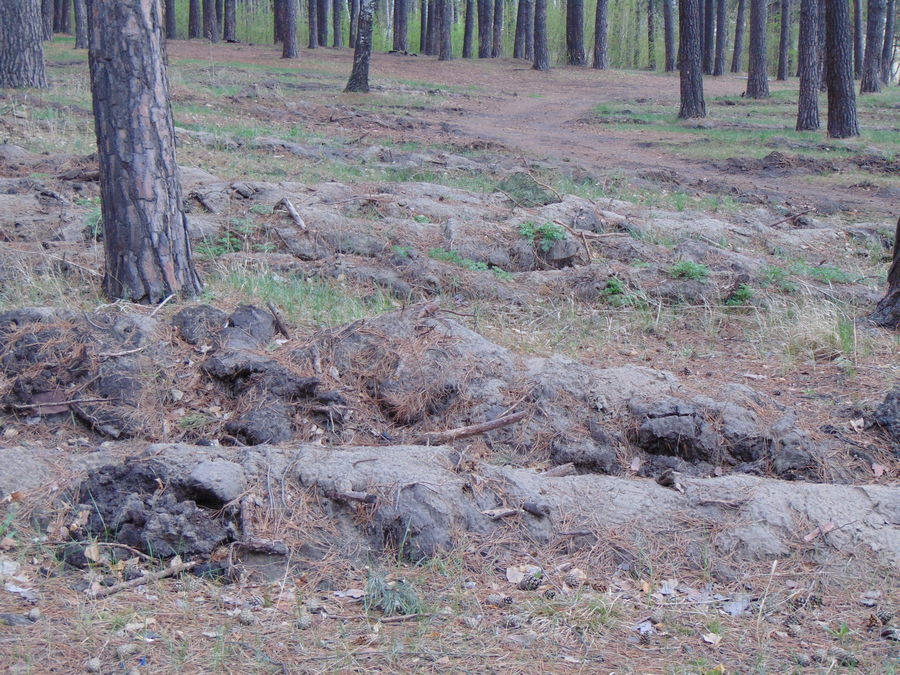 Внесли свою лепту и лесники: нарыли глубокие канавы, между отвалами посадили молоденькие сосенки. Якобы для лесовосстановления. Но ничто не прижилось.
