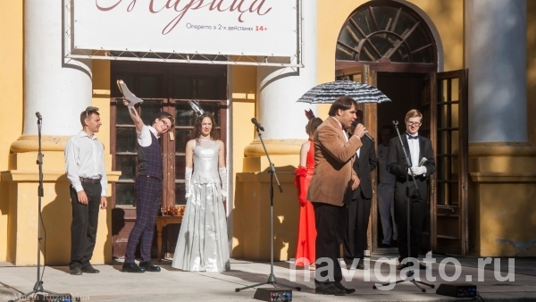 Небольшой концерт на крыльце НТМК составили выступления любимцев публики – солистов театра Вадима Кириченко, Анны Фрокколо, Анна Ставская и ансамбля «Миг».