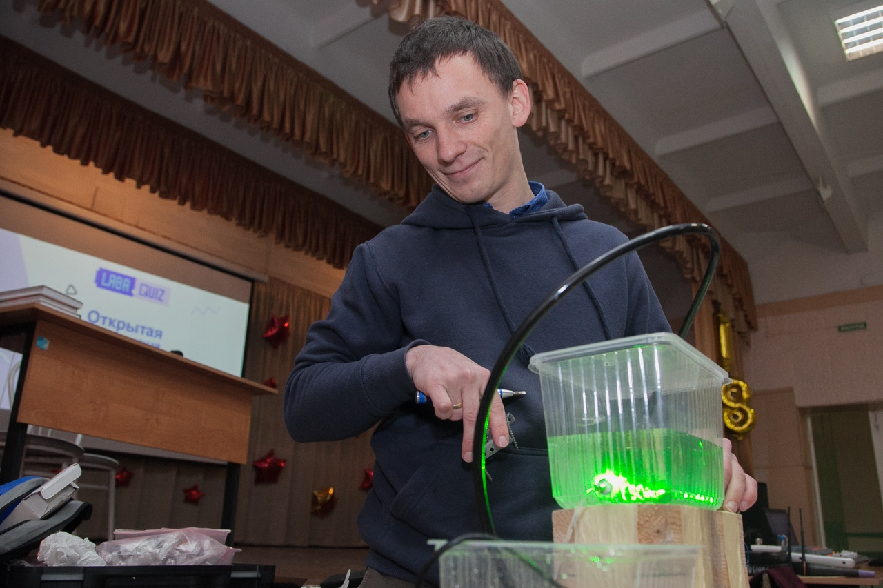 После этого участников ждала увлекательная дополнительная программа: научные шоу, экскурсии, лекции или демонстрации экспериментов. Так, сотрудник Института автоматики и электрометрии Виктор Симонов привез в Линево установку, чтобы показать свойства лазеров. На площадке в НГТУ после разбора ответов выступил научный блогер, кандидат химических наук, сотрудник Института неорганической химии СО РАН Иван Меренков с лекцией «Зачем нам нужны новые элементы». Завершилась «Лаба» демонстрационными экспериментами с электричеством, огнём, дымовыми кольцами, водородом, жидким азотом, в которых принимали активное участие гости мероприятия.