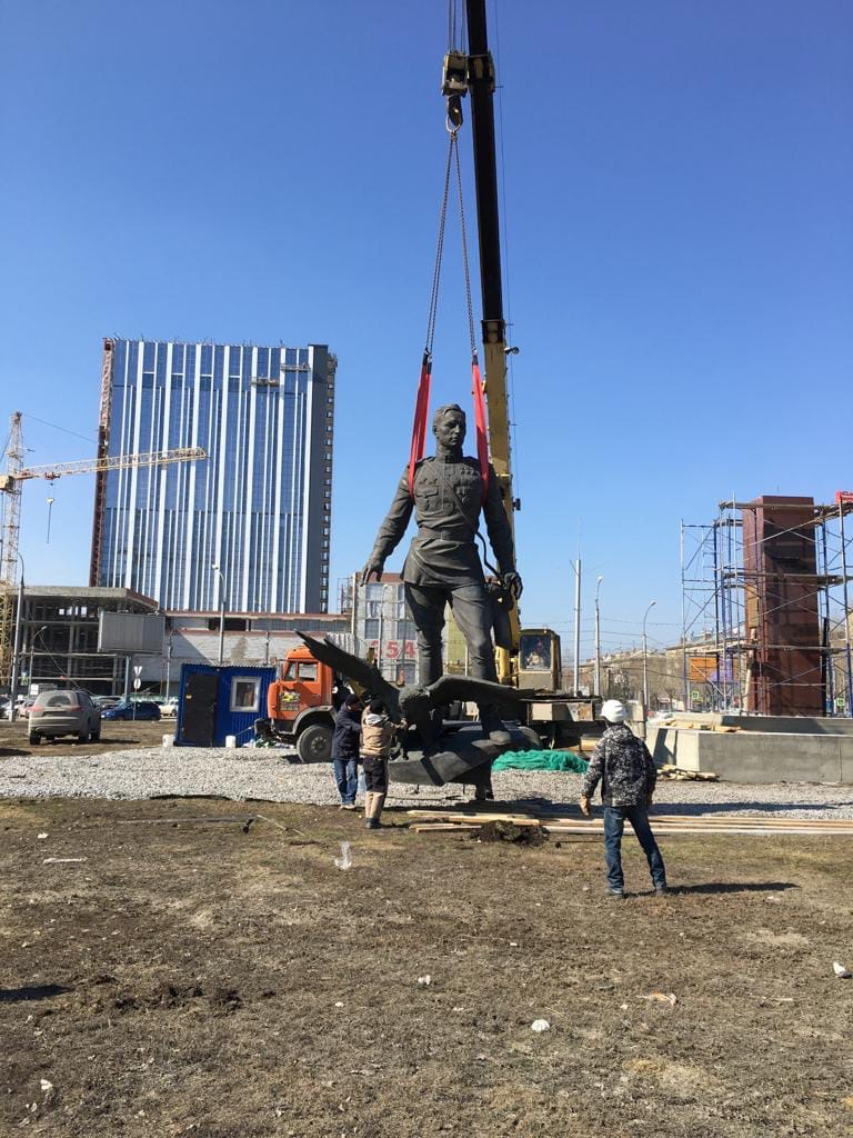– Работы по установке памятника и благоустройству в твердом покрытии мы планируем закончить по графику до 4 мая, – рассказал начальник управления по благоустройству общественных пространств мэрии Вадим Полещук. – Далее будет высадка газонов, кустарников и деревьев, эта часть будет закончена в июне.