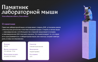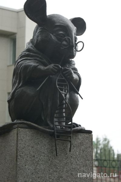 100 необычных памятников со всей России вошли в виртуальный сборник самых необычных скульптур страны. В их числе и памятник лабораторной мыши, которая вяжет нить ДНК.