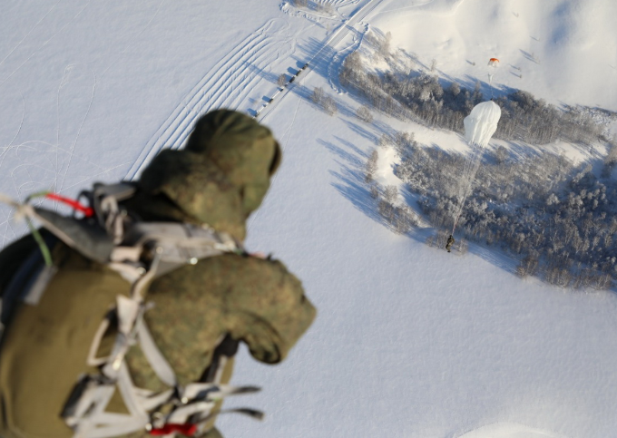 Десантировали будущие разведчики из вертолета МИ-8АМТШ «Терминатор». Высота – 800 метров.