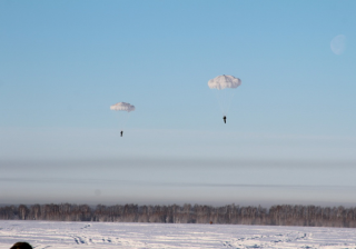 Курсанты учебного центра подготовки младших специалистов разведки Новосибирского высшего военного командного училища выполнили первые прыжки с парашютом под Новосибирском.