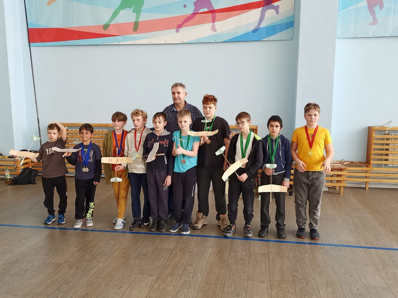 В средней возрастной группе в запуске модели простейшего вертолёта «Муха» высший класс показали Иван Тарасов – у него золото, Иван Новопашин – у него серебро, а также Руслан Грушецкий и Ростислав Среднев, которым досталась бронза. Такой же результат у Ростислава за умение запускать модель планера.
