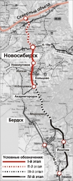 Первый этап федеральной магистрали в 2017 году должен был соединить ленинск-кузнецкую трассу и автодорогу Академгородок-Кольцово. По словам министра, у многих жителей вызывало тревогу, что с окончанием строительства транзитный транспорт, движущийся на Чуйский тракт, пойдет через Академгородок. Рассматривались разные проекты, которые позволяли бы этого избежать, в том числе и вывод транзитного потока через Нижнюю Ельцовку.