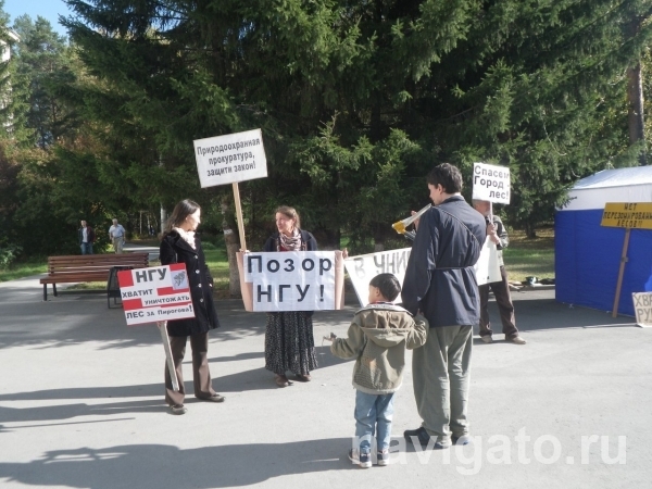 Пикет против расширения строительства НГУ за счет массовой вырубки леса проходил вчера, идет сегодня до 18:00 напротив старого главного корпуса НГУ.