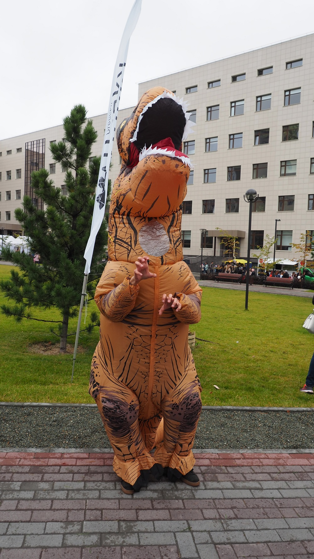 Гостей «Open space picnic» во внутреннем дворе нового главного корпуса встречают большие динозавры. Но подходить к ним, как отмечают даже самые маленькие гости праздника, совсем не страшно. Доисторические гигантские ящеры весело танцуют (возможно, просто таким образом греются), обнимаются и фотографируются с теми, кто пришел на пикник. Вряд ли такие милые создания могут кого-то напугать!