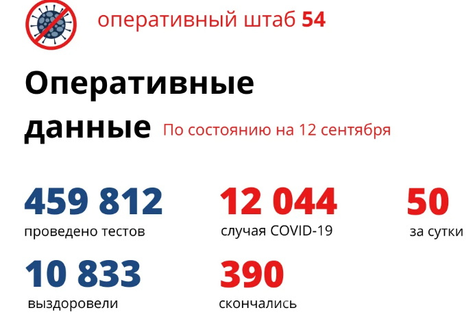 12 сентября оперативный штаб сообщил о 50 новых случаях заражения COVID-19. Из более чем 12 тысяч заболевших почти 11 тысяч выздоровели. В том числе за последние 24 часа выздоровели еще 58 пациентов с коронавирусом.