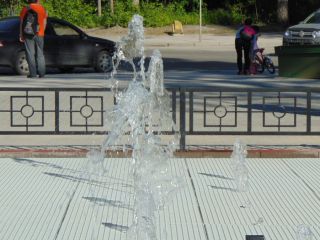 – То, что вы видите на поверхности, это только 10 % гидротехнического сооружения. Это как айсберг, где видна лишь верхушка. Конечно, наш пешеходный фонтан не такой большой, как, например, в Казани, где сотни квадратных метров. Стоило бы такое сооружение очень дорого. Здесь самый бюджетный вариант – четыре ряда по восемь струй. У нас это лишь дополнение к выполненному благоустройству.