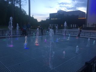 – Ходить между струями можно. Пожалуйста, хоть сейчас! – предлагает ректор Михаил Федорук. – А ограждение установили, чтобы не было доступа маленьким детям. Мамы нередко приходят, садятся на лавочки, беседуют друг с другом или по телефону, а дети бегают без ограничений и иногда даже без присмотра. Не дай бог ребенок упадет на ребристой поверхности. Там жесткий пластик, края у ячеек очень острые. Можно пораниться. Чтобы избежать таких случаев, решили сделать ограждение. Но гулять между струй не возбраняется.
