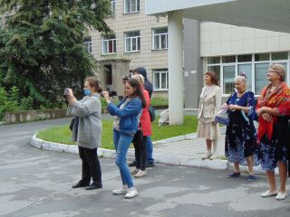 – Эту акцию организовала общественная организация «Здесь и сейчас!», которую возглавляет Людмила Королёва, – рассказала нашему корреспонденту Людмила Суховеркова, одна из участниц. – Нас поддержал Николай Игнатович, руководитель ансамбля «Завалинка» из Дома культуры «Приморский». Участницы коллектива с удовольствием согласились здесь выступить. Ещё наши женщины подготовили стихи. Пусть этот концерт внесёт хоть какое-то разнообразие в повседневную жизнь врачей и тех, кто проходит лечение.