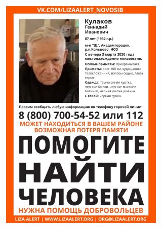 История пропавшего Геннадия Кулакова для поисковиков началась 4 марта. Тогда в 18.10 волонтёры получили заявку на поиск учёного, который ушел с работы, но домой так и не вернулся.