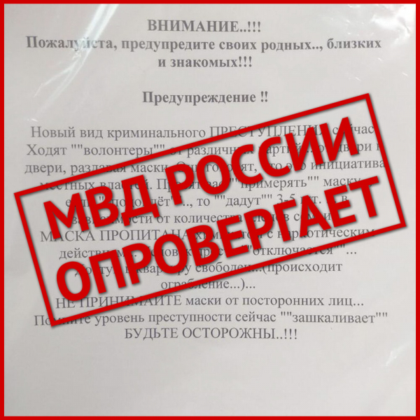 В Новосибирске многие стали получать в мессенджерах сообщения о действующих на территории города ворах. Они якобы ходят по квартирам, представляются волонтерами и раздают новосибирцам маски, пропитанные наркотическими средствами.
