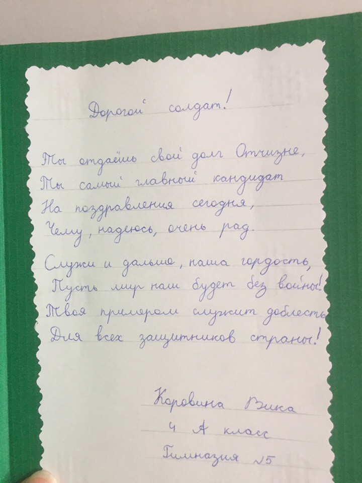 Горожане приносят различные сладости, пену для бритья, парфюм. Школьники и творческие студии готовят для солдат поздравительные открытки.