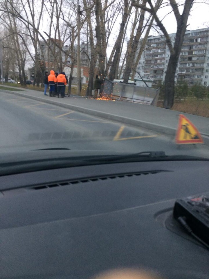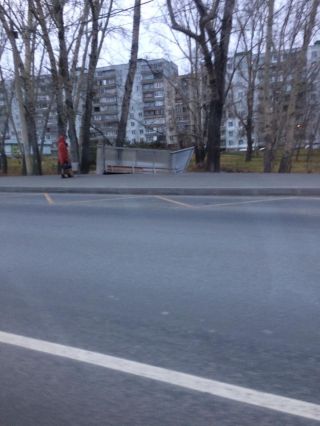 Второй раз пострадал остановочный павильон на остановке «Кинотеатр «Маяк» на Шлюзе. Буквально две недели назад его укрепили с помощью металлической арматуры, но этого оказалось недостаточно: не была учтена ветровая нагрузка. Ураган перевернул конструкцию, вырвав крепления вместе с асфальтом. В 9.20 туда уже приехали работники ДЭУ для наведения порядка.