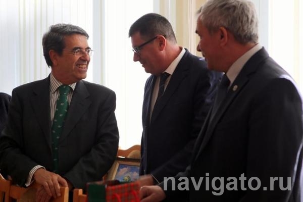 Михаил Федорук познакомил Марио Годиньо де Матуша с историей и структурой университета, рассказал о языковых центрах, которые действуют в НГУ. Марио Годиньо де Матуш подчеркнул, что у Португалии есть необходимая для международного взаимодействия вузов база: