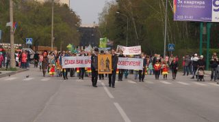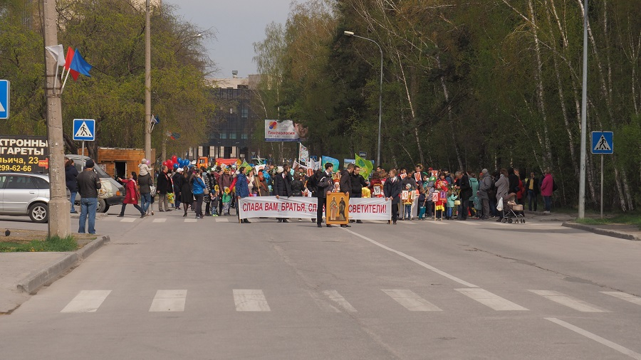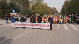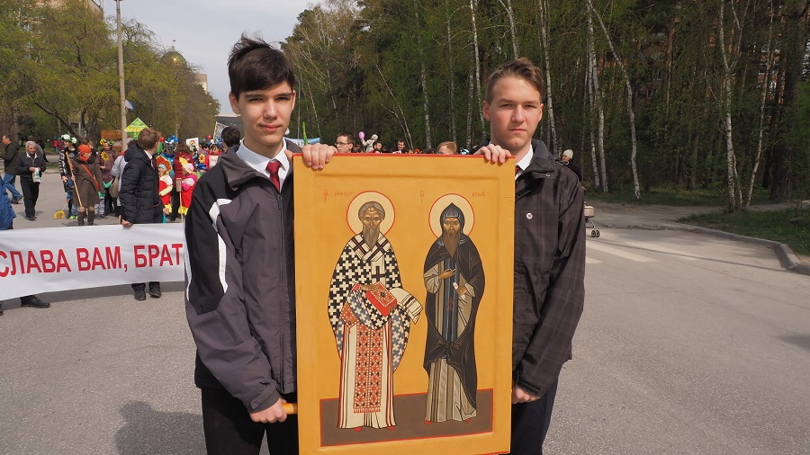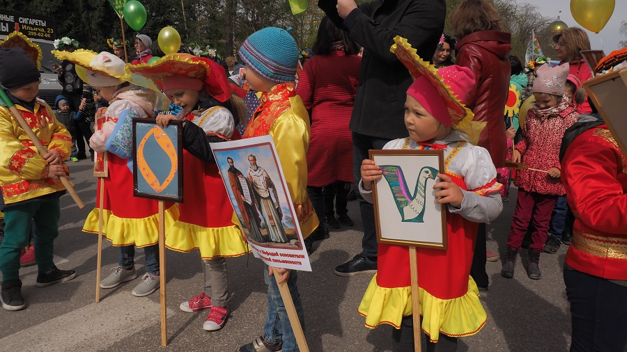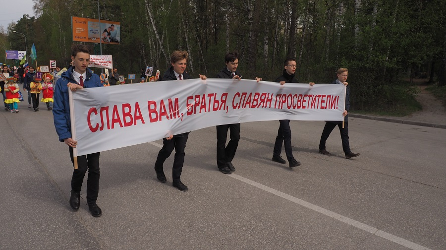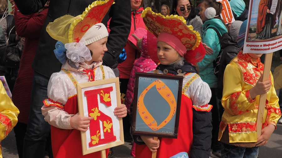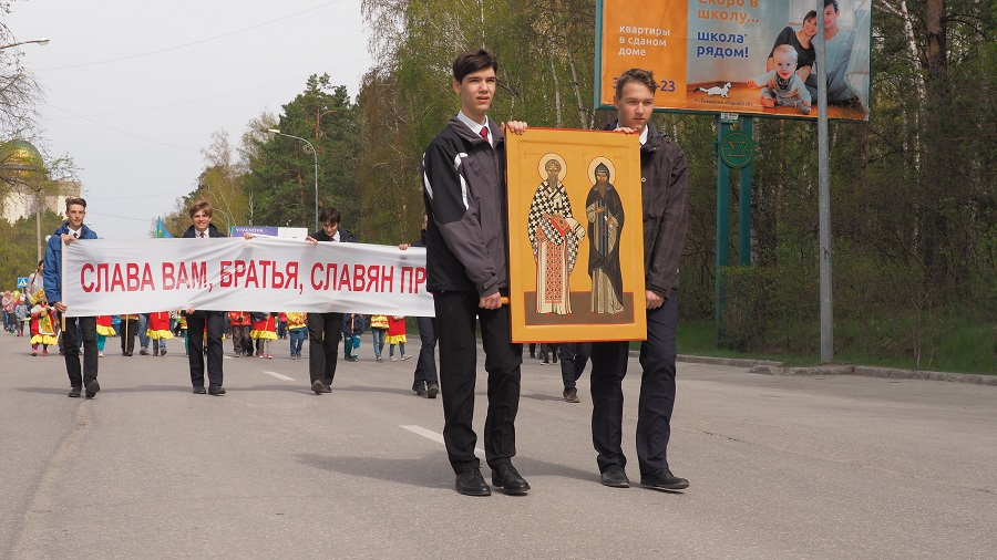 Первыми шли старшеклассники. В их руках – большой плакат «Слава вам, братья, славян просветители». Дальше – дошколята. В руках – буквы алфавита.