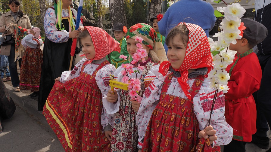 – Мы проходим это уже во второй раз. Правда, в прошлом году в шествии участвовал только сын, сегодня – и дочка. Она хорошо готовилась. Мы шили платье в русском стиле, она сама выбирала ткань, контролировала мой каждый шаг: чтобы тесемка подходила, чтобы всё-всё было в порядке, – улыбаясь, говорит Оксана Горбачева.