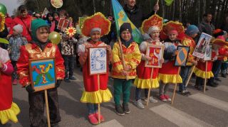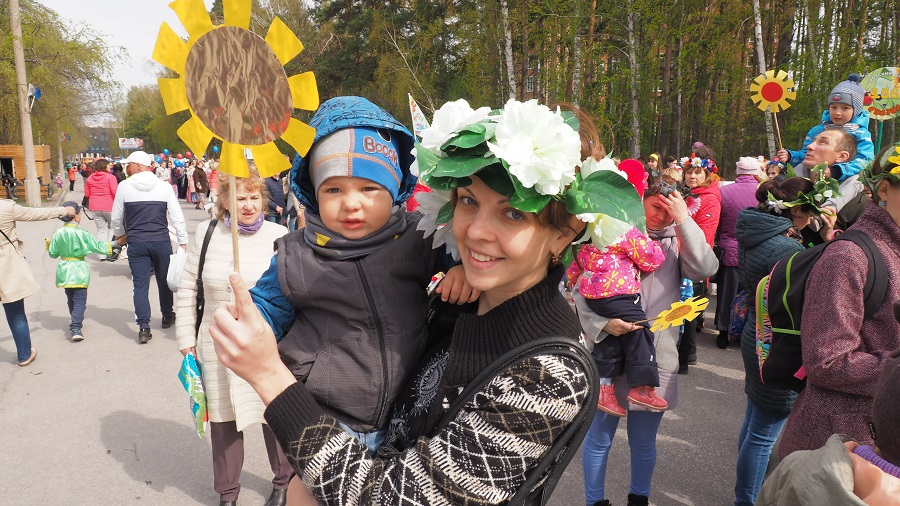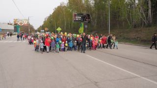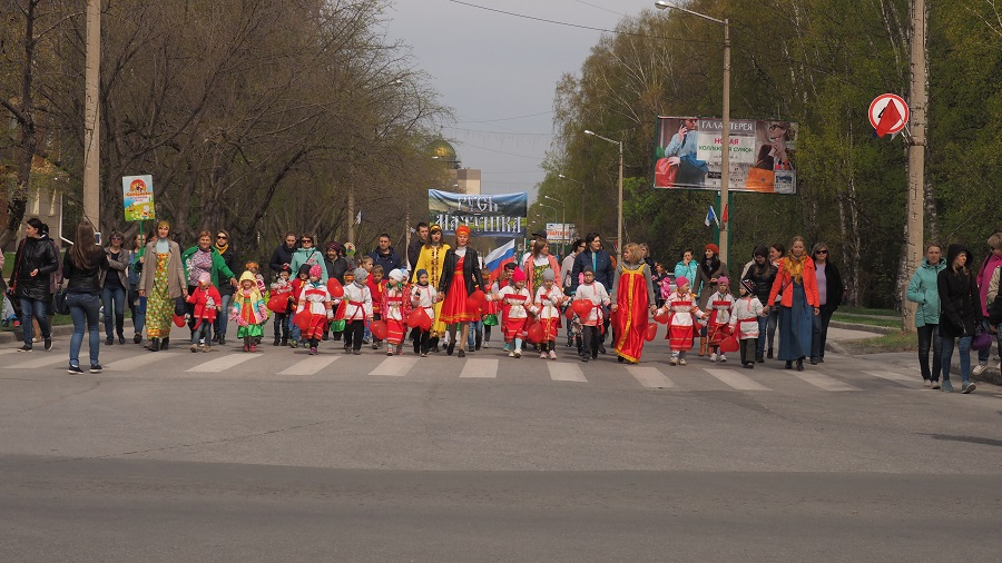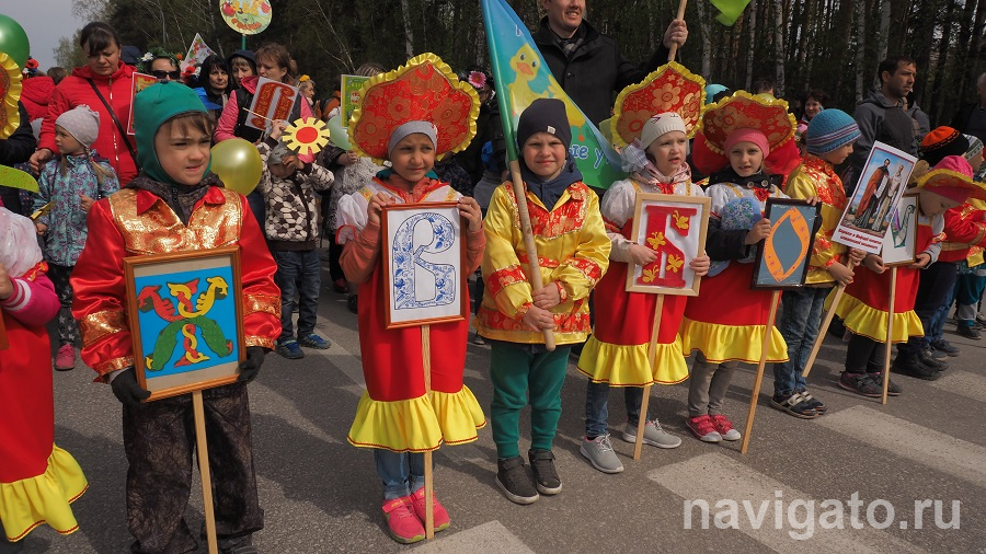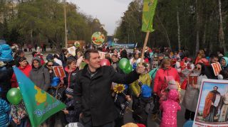 Шествие колонны воспитанников детских садов, школ и патриотических клубов проходит в самом сердце Академгородка не первый год. Ребята выстраиваются в колонну около гостинцы «Золотая долина», а дальше по улице Ильича идут до Дома ученых.